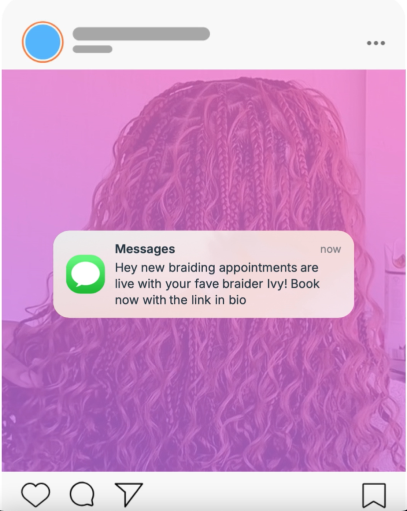 This can look like posting videos of her and her clients interacting while getting their hair done, participating in trends that reflect her personality and jumping on client trends.